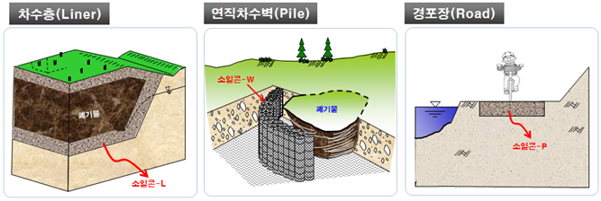 대상토질에 따라 시멘트, 석회, 석고, 포졸란계, 무기염류 등을 최적으로 조합시킨 소일크리트 고화재를 이용하여 기존혼합토 공법의 문제점을 개선하고 경제적으로 liner, wall, road 등 공사에 사용되는 공법임.