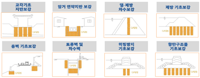 • 중간깊이(3m~13m)연약지반 개량에 탁월한 효과